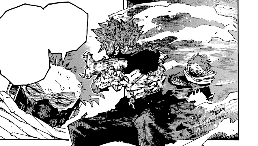 - Red Counter: While hardened, Eijiro endures a close-range attack with his skin and then counters with a straight punch.