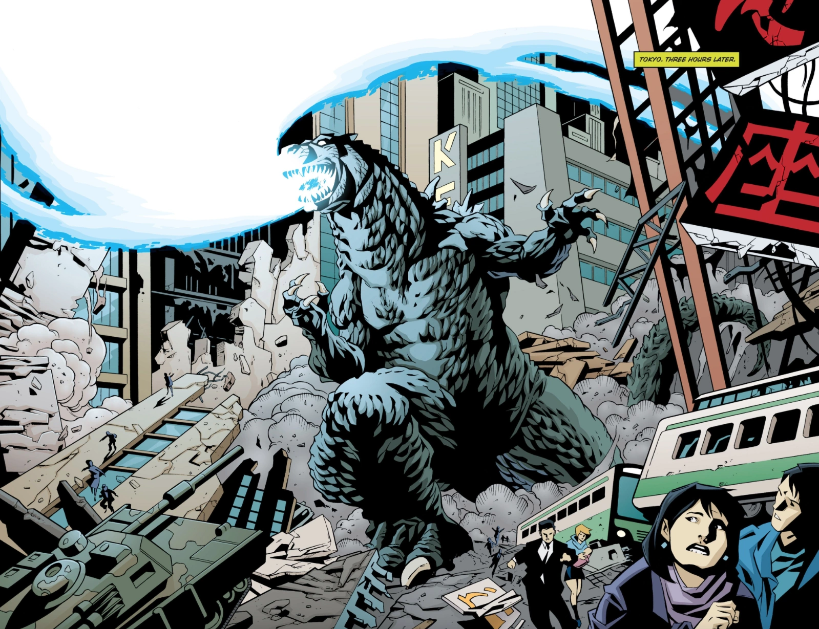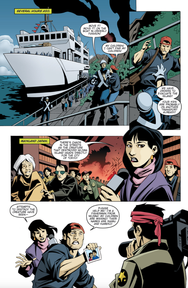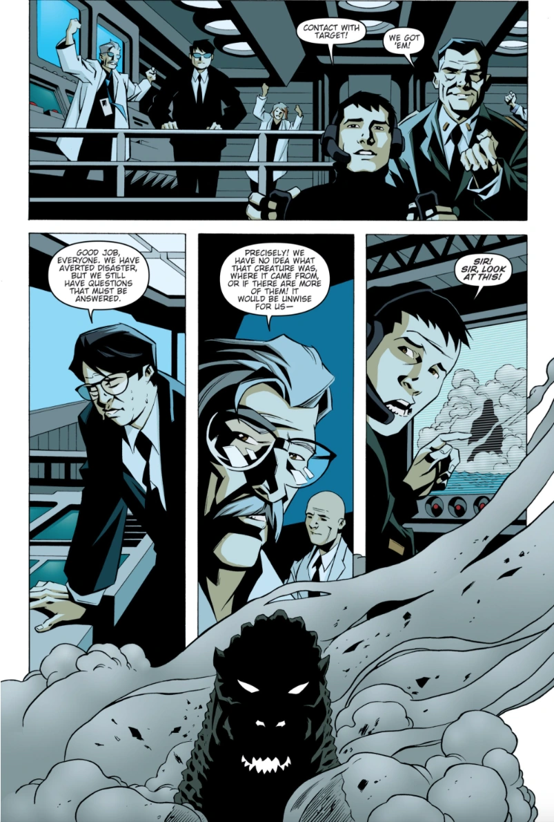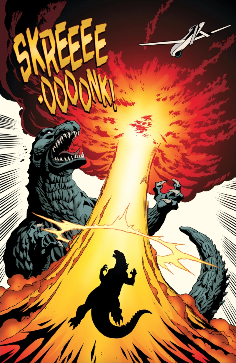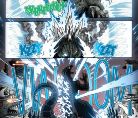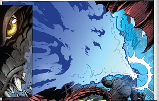 A prehistoric monster who suddenly awakened from under the sea in 2011, Godzilla was immediately attacked with a nuclear weapon which only served to grant him atomic powers. Godzilla terrorized the globe as other giant monsters began to appear as well. After clashing with Anguirus, Godzilla battled against King Ghidorah and humanity's own weapon, Mechagodzilla. He finally triumphed in battle against Rodan and Battra, who were under the control of the evil psychic twins Minette and Mallory. As time went on, Godzilla remained a constant threat, appearing in cities such as Washington, D.C. Mercenary Boxer formed an elite team specifically to hunt Godzilla and monsters like him, while humanity built a new and improved Mechagodzilla to combat him. Godzilla would turn out to be the lesser of two evils when a group of four space monsters arrived on Earth to wreak havoc. Godzilla joined forces with humanity and his fellow Earth monsters to battle the space monsters, finally defeating the powerful Keizer Ghidorah with help from Rodan. Godzilla gradually began to be seen as a force of nature, his occassional attacks much like a hurricane or earthquake. He became more active as other new monsters such as Zilla and Sanda and Gaira began emerging. The Earth soon fell victim to an alien invasion by the Cryogs and Devonians and their armies of monsters. Godzilla stood at the front lines, defeating the Devonians' monsters and destroying their capital. However, the Cryogs struck back with monsters of their own, including an army of mass-produced Mechagodzillas and the deadly power-absorbing Trilopods. Only with the assistance of the other monsters of Earth and mankind's mecha units was Godzilla able to slay the Trilopods and their colossal queen, Magita, earning him a much-deserved rest from battle.