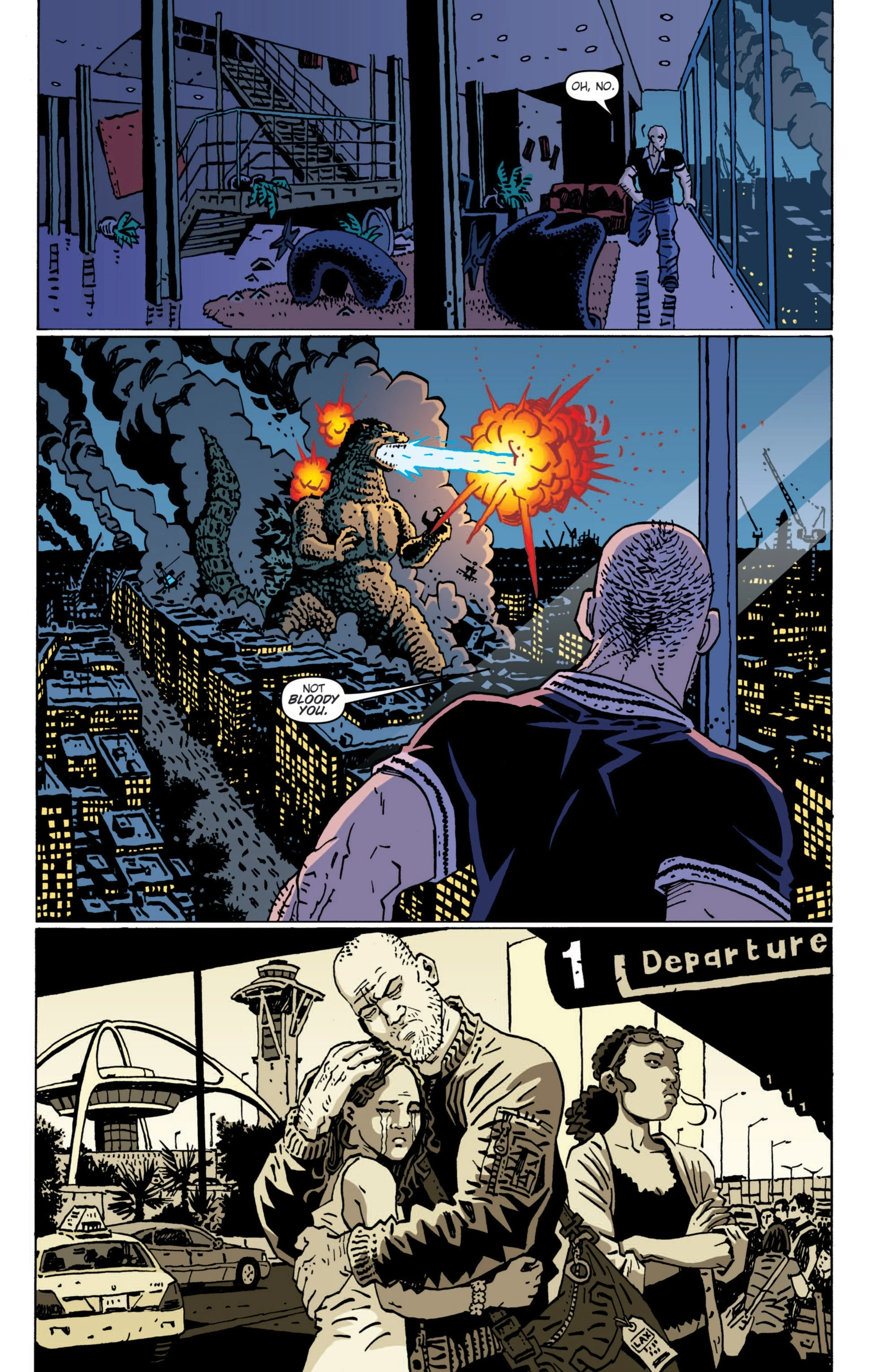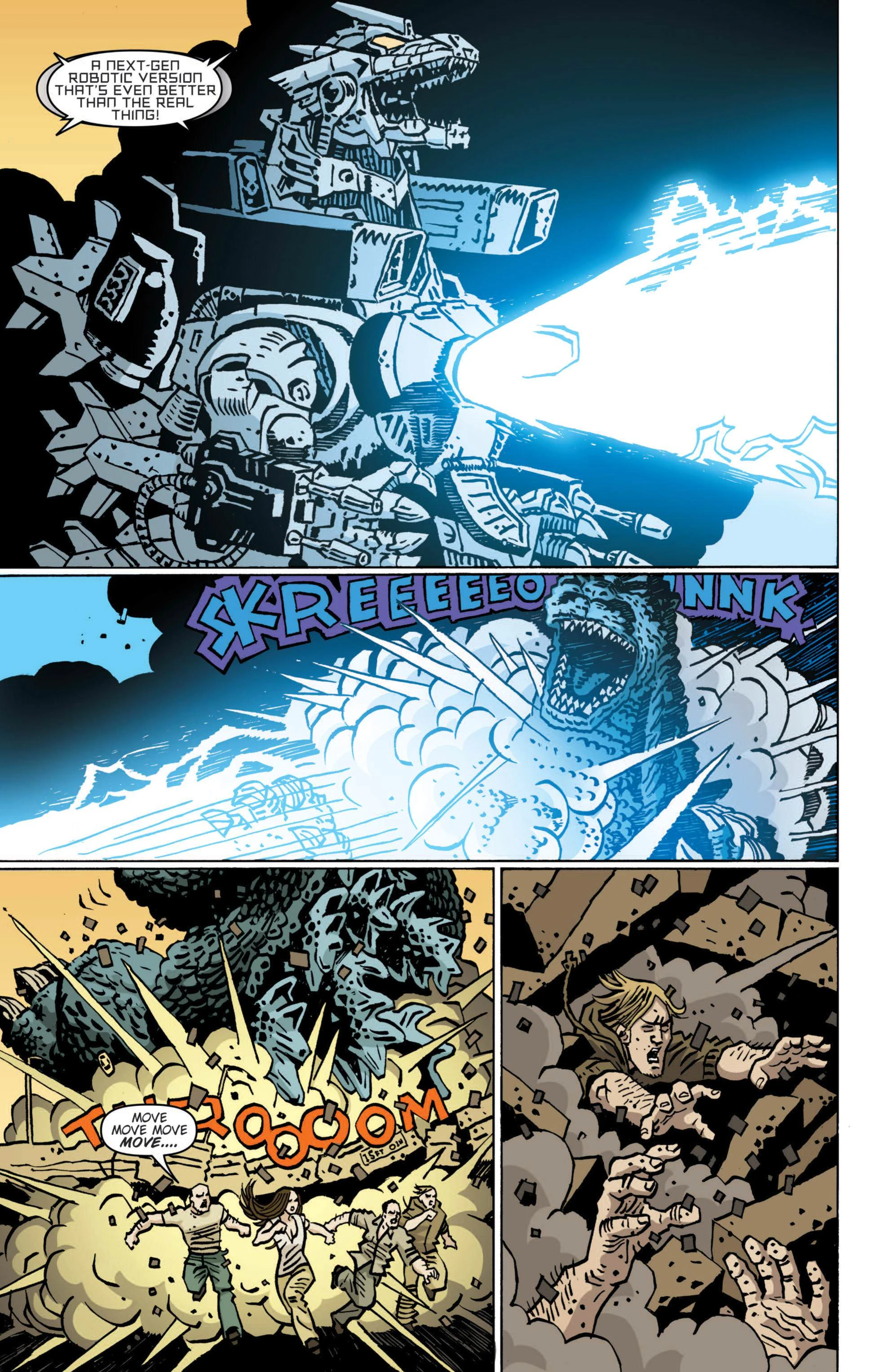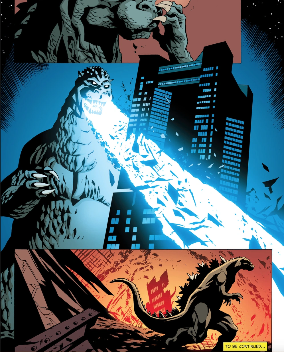 A prehistoric monster who suddenly awakened from under the sea in 2011, Godzilla was immediately attacked with a nuclear weapon which only served to grant him atomic powers. Godzilla terrorized the globe as other giant monsters began to appear as well. After clashing with Anguirus, Godzilla battled against King Ghidorah and humanity's own weapon, Mechagodzilla. He finally triumphed in battle against Rodan and Battra, who were under the control of the evil psychic twins Minette and Mallory. As time went on, Godzilla remained a constant threat, appearing in cities such as Washington, D.C. Mercenary Boxer formed an elite team specifically to hunt Godzilla and monsters like him, while humanity built a new and improved Mechagodzilla to combat him. Godzilla would turn out to be the lesser of two evils when a group of four space monsters arrived on Earth to wreak havoc. Godzilla joined forces with humanity and his fellow Earth monsters to battle the space monsters, finally defeating the powerful Keizer Ghidorah with help from Rodan. Godzilla gradually began to be seen as a force of nature, his occassional attacks much like a hurricane or earthquake. He became more active as other new monsters such as Zilla and Sanda and Gaira began emerging. The Earth soon fell victim to an alien invasion by the Cryogs and Devonians and their armies of monsters. Godzilla stood at the front lines, defeating the Devonians' monsters and destroying their capital. However, the Cryogs struck back with monsters of their own, including an army of mass-produced Mechagodzillas and the deadly power-absorbing Trilopods. Only with the assistance of the other monsters of Earth and mankind's mecha units was Godzilla able to slay the Trilopods and their colossal queen, Magita, earning him a much-deserved rest from battle.