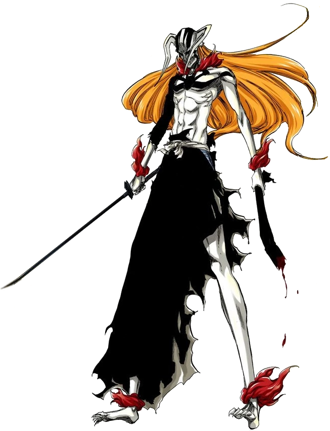 All previous abilities including Partially Possessed By Zangetsu, Immortality (Type 4. Zangetsu could resurrect Ichigo after he’d died), Limited Telekinesis (He’s able to bring Zangetsu back to his hand), Resurrection, Statistics Amplification (He’s able to use Sonido which increases his speed similar to Shunpo), Body Control (He can form his fingers into claws making them stronger), Soul Absorption/Statistics Amplification/Fusionism (Hollows can consume each others souls fusing into a new being and becoming stronger. Hollows passively absorb the Reishi within Reishi-enriched environments), Spatial Manipulation (Hollows can tear holes in reality and the opening have shown to cause space around them to distort), Poison Manipulation/Statistics Reduction/Death Manipulation/Corruption (Type 2. A Hollows very existence is poisonous to a being who doesn't have the proper antibodies. This will later cause the afflicted becoming weak and losing spiritual power. It will also let to their soul to start decaying away and it'll ultimately kill them), Sealing/Soul Manipulation (Hollows are capable of ripping a soul from a body and they're also capable of sealing it within another person or object), Resistance to Extrasensory Perception (He could slip through Ulquiorra’s Pesquisa when he used Sonido).