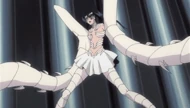 Resurrección: Its release command is Poison. In her released state, she takes on the form of a centipede-like creature. Her mask grows and covers both of her cheeks. She grows armor over her legs, arms, breasts, and neck. Her arms take the form of two long centipede-like creatures. They have the body of a centipede without the head. Anything she touches in this form is instantly eroded away by the poison that drips from her arms.