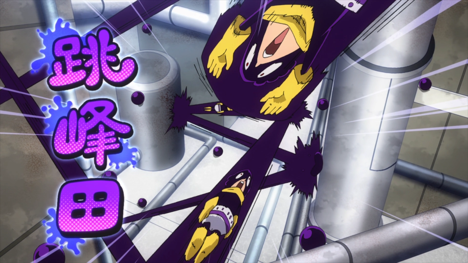 Pop Off: Minoru Mineta's Quirk allows him to produce and pluck ball-shaped objects from his head. The balls grow back just as fast as they're plucked.