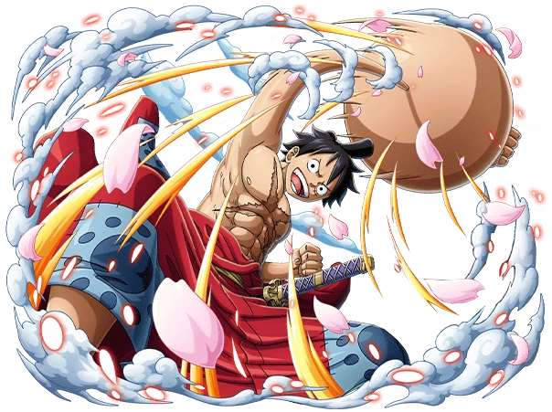 - Gomu Gomu no Muchi: Luffy stretches his leg and kicks in a wide circle, striking multiple foes.