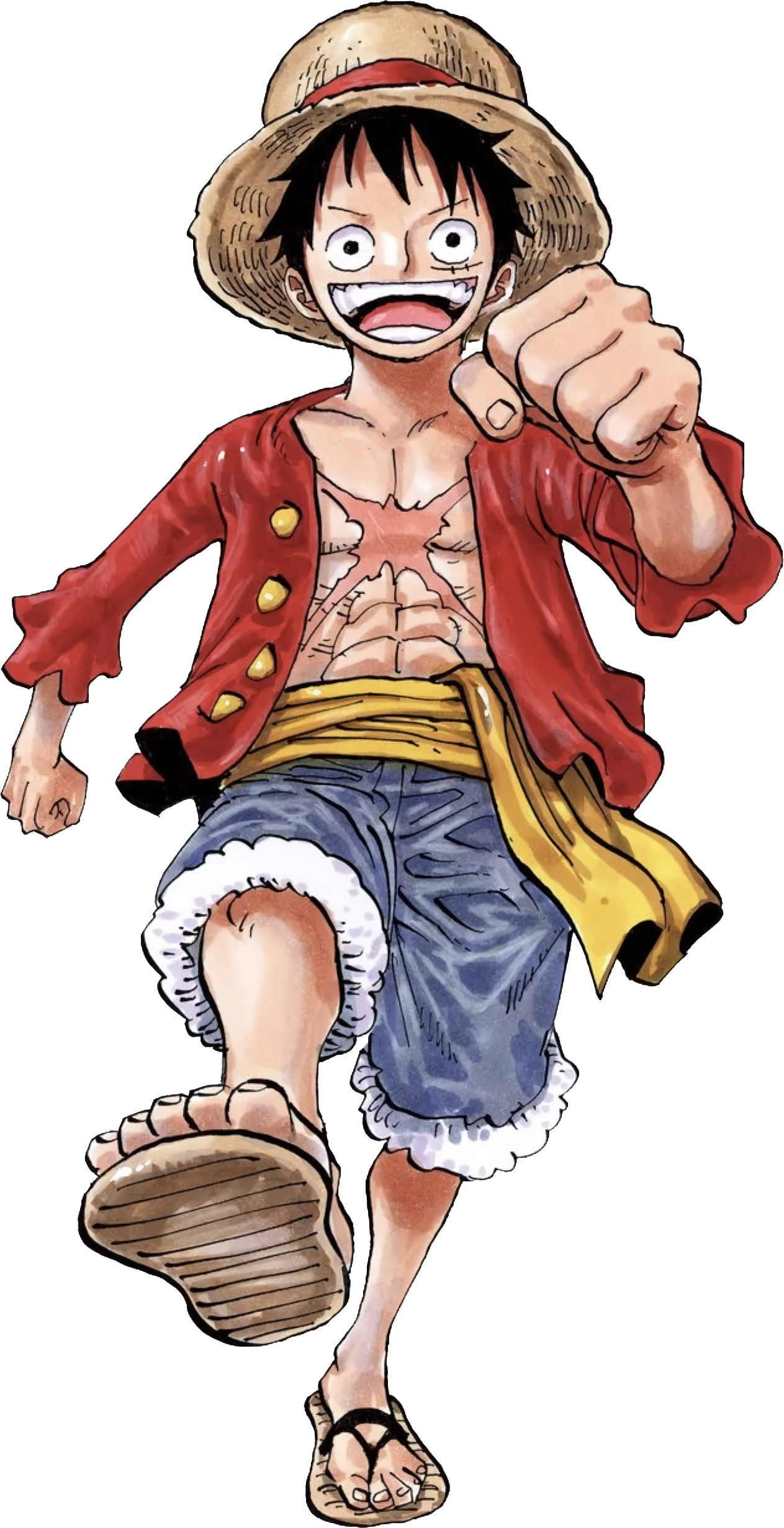Monkey D. Luffy, also known as Straw Hat Luffy and commonly as Straw Hat, is the main protagonist of the One Piece series. He is the founder and captain of the increasingly infamous and powerful Straw Hat Pirates, as well as one of its top fighters. He's the son of Monkey D. Dragon, a revolutionary considered “The World's Most Dangerous Criminal”; the grandson of Monkey D. Garp, a powerful Marine Vice-Admiral who had cornered the late Pirate King himself on several occasions; the sworn brother of late "Fire Fist" Portgas D. Ace and Revolutionary chief of staff Sabo; and the foster son of Curly Dadan.
