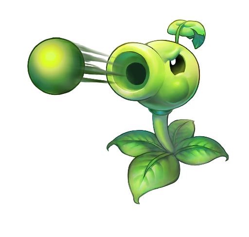 Peashooters are the primary plant type of the Day levels, and one of the first plants you get in Plants vs. Zombies. While they are based off of peapods, Peashooters also have some of their design (further seen with the Gatling Pea) on weaponry such as guns and/or cannons. Later in the game, you unlock species of the Peashooter such as the Repeater or Snow Pea, and further on, the Gatling Pea, as an upgrade, allowing it to shoot four peas at once.